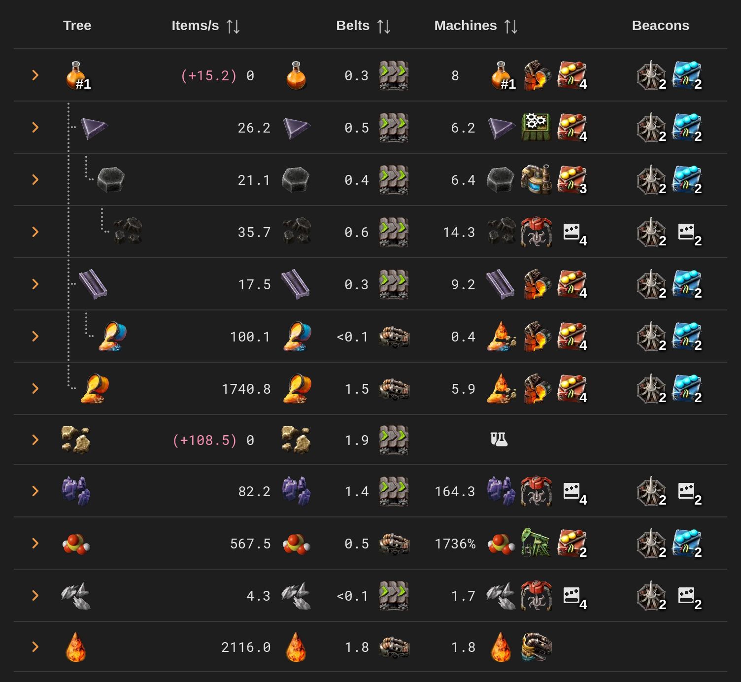 At this point I had a functional Rust library doing all of the math above, but editing source code to tweak parameters isn’t a nice user experience. I’d much prefer something like Factoriolab. And to be easy to use by other people it really should be on the web.